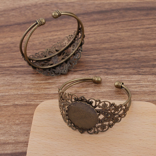 5 bord de pétoncle lunette coupe filigrane deux rangées bracelet cercle ouvert 18KGP 25mm cabochon rond Base vierge réglage de la pièce de pierre précieuse