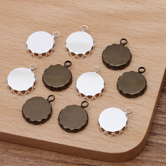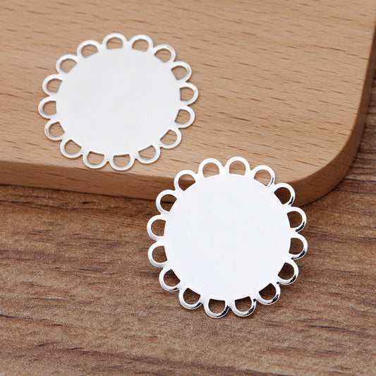 100 breloques à bord festonné, tampon plat plaqué argent, cabochon rond de 20mm et 25mm, Base vierge, réglage des pierres précieuses