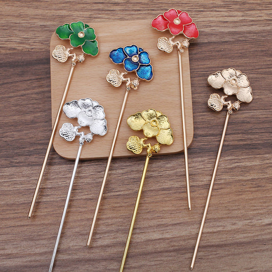 10 Charme floral époxy émail avec boucles Coupe de perles Épingle à cheveux en bâton chinois 18KGP 5mm Rond Non Poreux Base Vierge Pierre Précieuse Perle Réglage