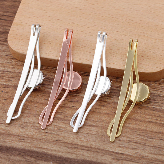30 pince à cheveux droite à bord uni, épingle à cheveux, 18KGP, cabochon rond de 12mm, Base vierge, réglage de la pièce en pierre précieuse