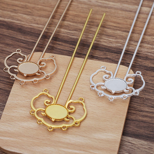 5 Multi boucles filigrane Floral charme cheveux fourchette épingle à cheveux 18KGP 13x18mm ovale Cabochon Base vierge pierre précieuse pièce réglage