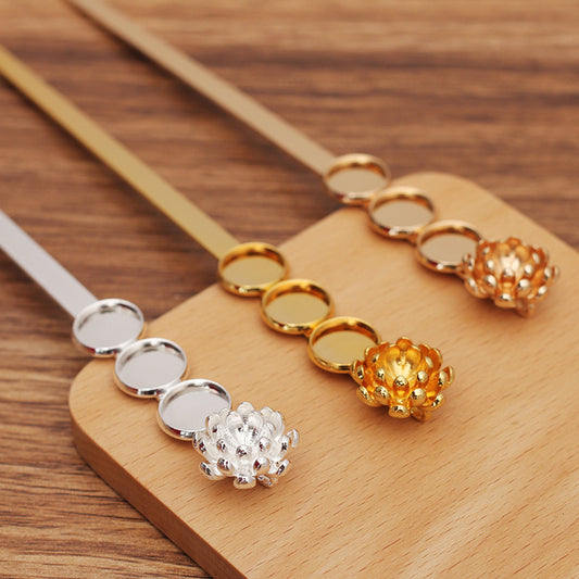2 multiples coupes de lunette à bords unis, épingle à cheveux chinoise à bâton plat 18KGP, cabochon rond de 12mm, Base vierge, réglage de pièces de pierres précieuses