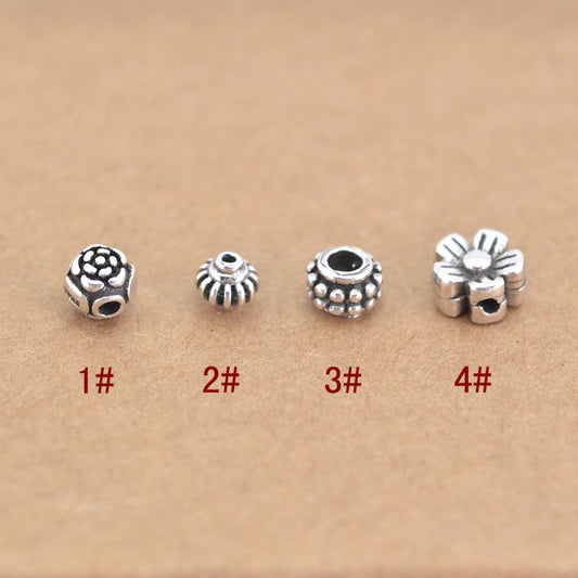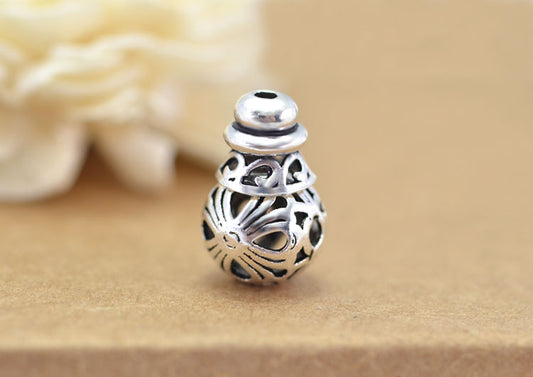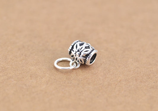 Sterling Silver Tiny Drum Bead Floral Heart Bead Charm Pendant S925 Finding