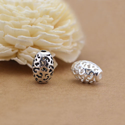 Sterling Silver Hollow Vein Oval Bead Spacer S925 Finding