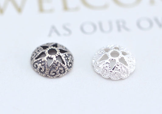 Sterling Silver Floral Bead Cap Cup S925 Finding