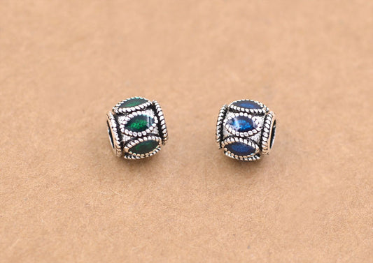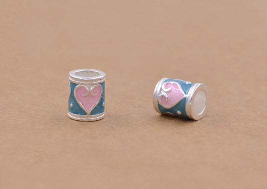 Sterling Silver Enamel Epoxy Column Pipe Bead Spacer with Loop S925 Finding