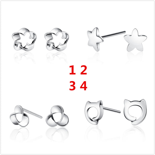 Sterling Silver Floral Star Cat No Yes XO Celtic Knot Dog Bone Stud Earrings S925 Finding