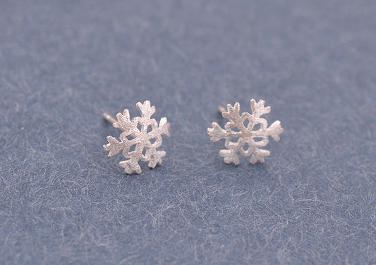 Sterling Silver Matte Snowflake Square Cuboid Mustache Arc Stud Earrings S925 Finding