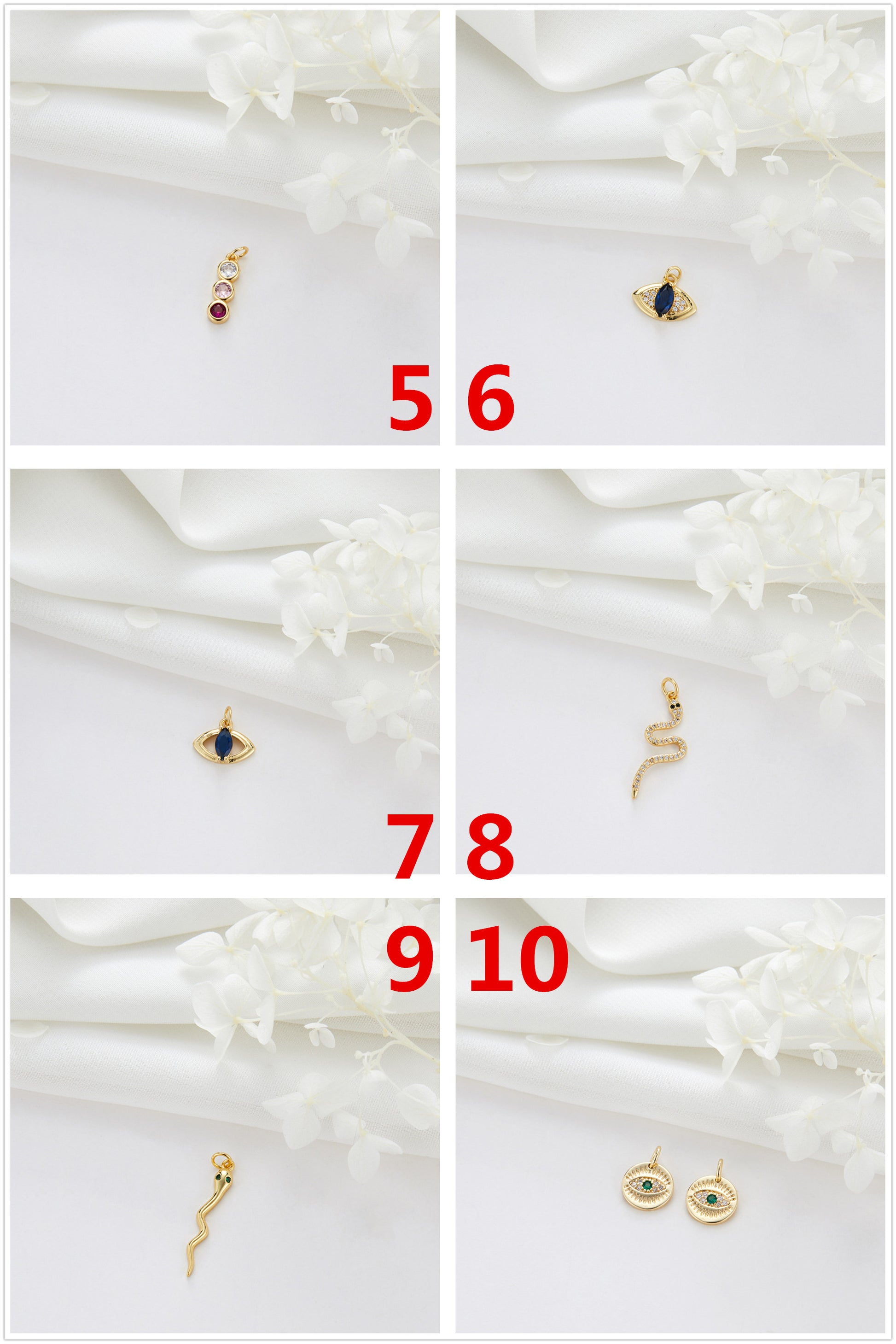 2 coeur nuage musique lune oeil serpent charme pendentif strass embelli 14K GF