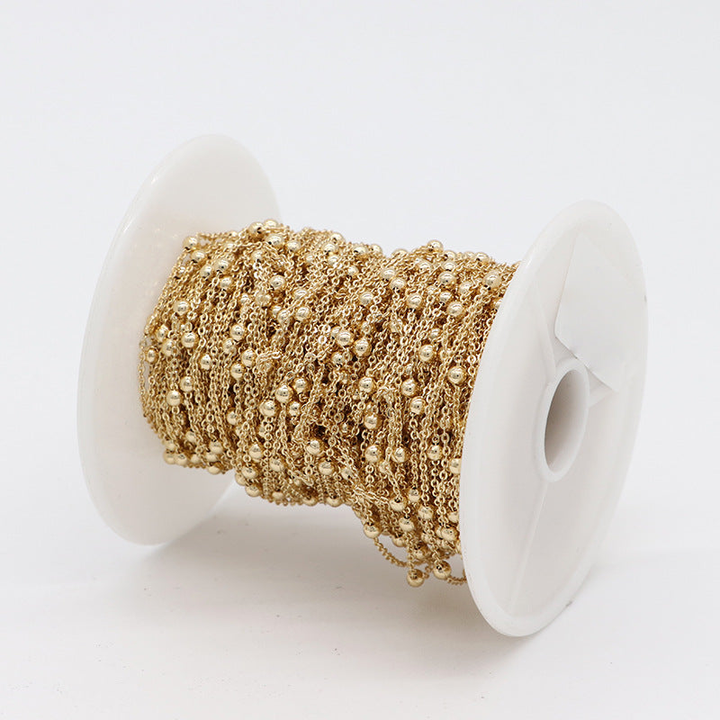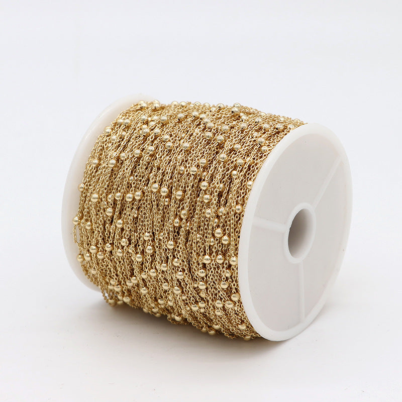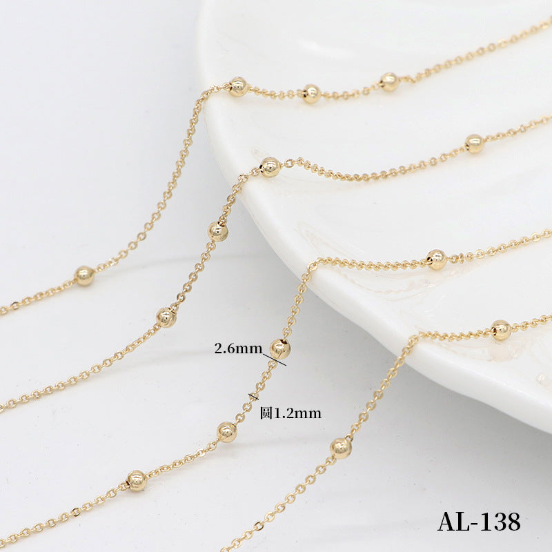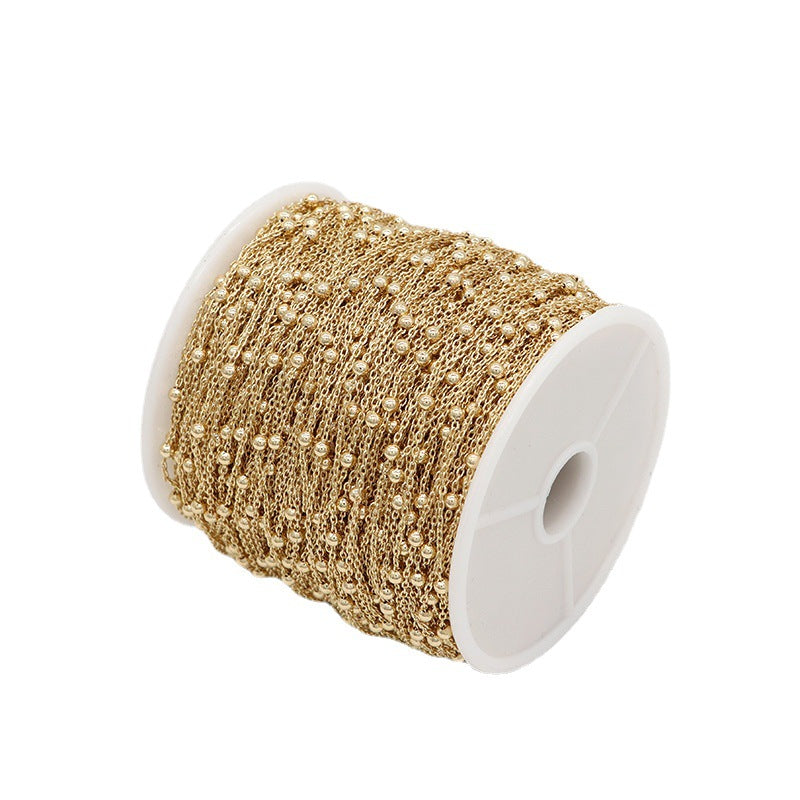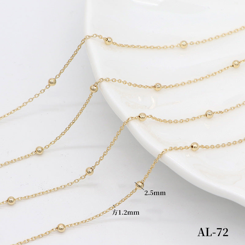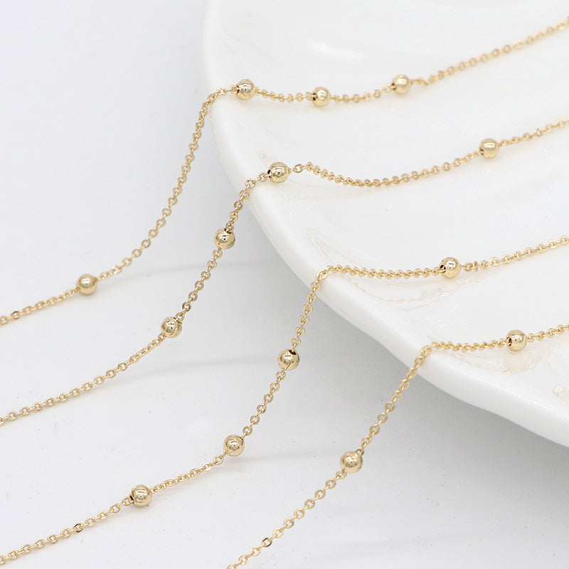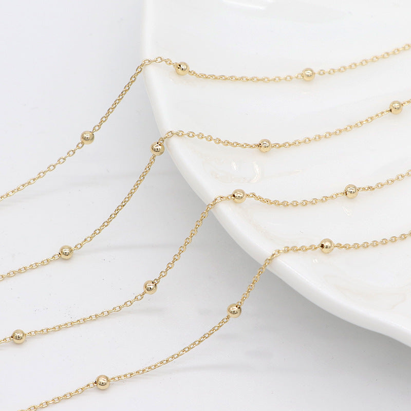 Chaîne fine à maillons carrés et ronds perlés de 2 mètres, 14K GF