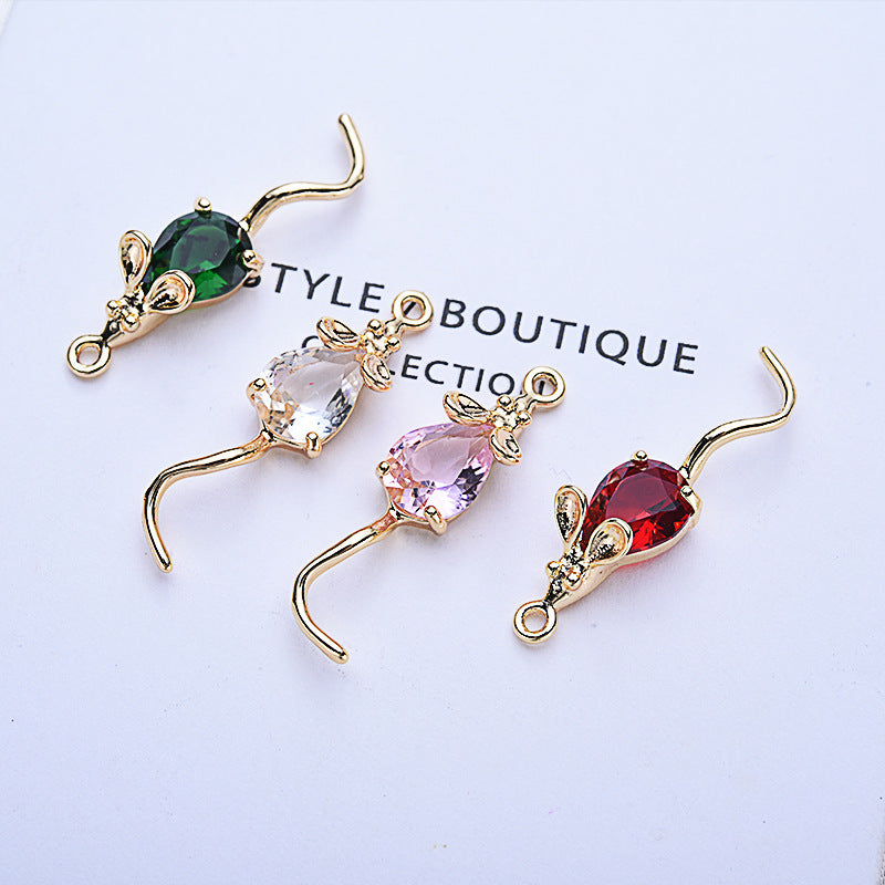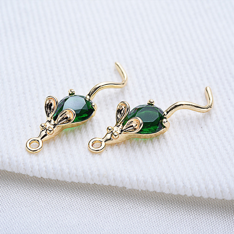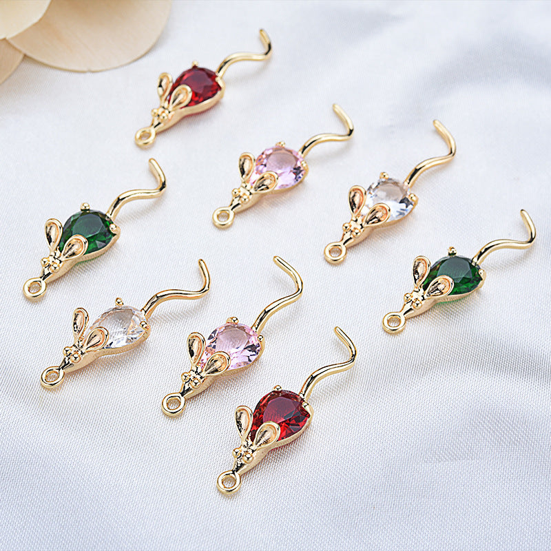 20 Rat Mouse Charm Pendentif Strass Embelli 14K GF