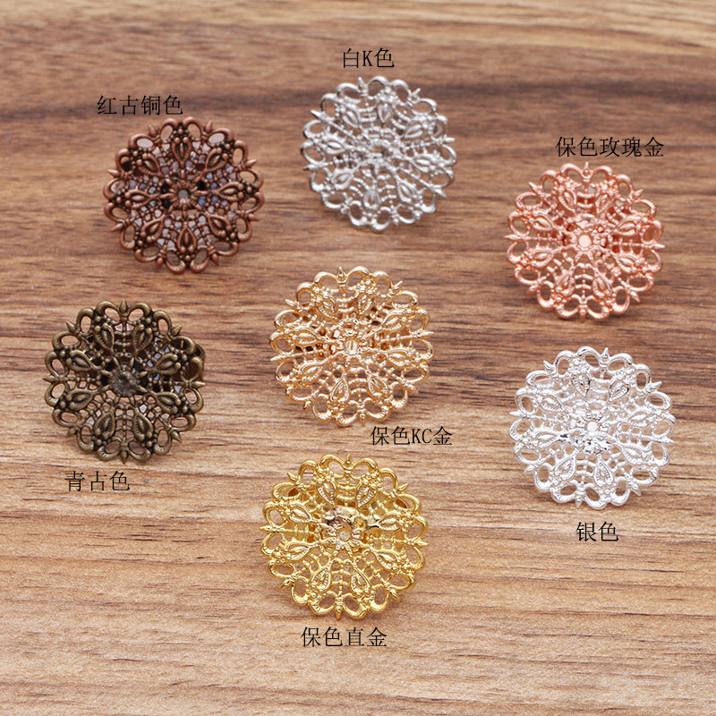 Bague circulaire ouvrable en filigrane Floral, 100, 18KGP, 25mm, cabochon, Base vierge, réglage des pierres précieuses
