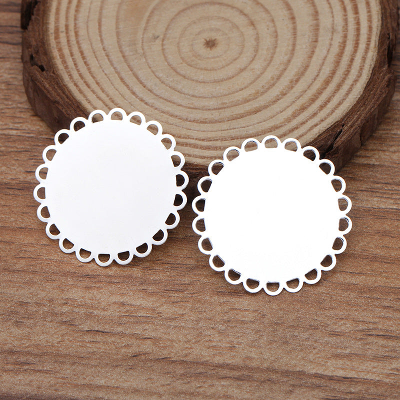 100 breloques à bord festonné, tampon plat plaqué argent, cabochon rond de 20mm et 25mm, Base vierge, réglage des pierres précieuses