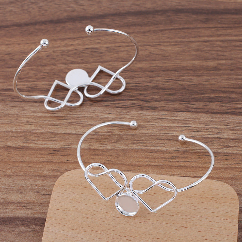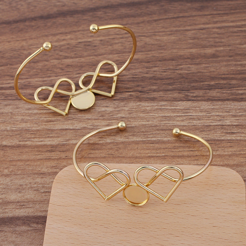 Bracelet à cercle ouvert en forme de cœur enveloppé de fil de coupe à 5 bords unis, 18KGP, cabochon rond de 12mm, Base vierge, réglage de pièces de pierres précieuses