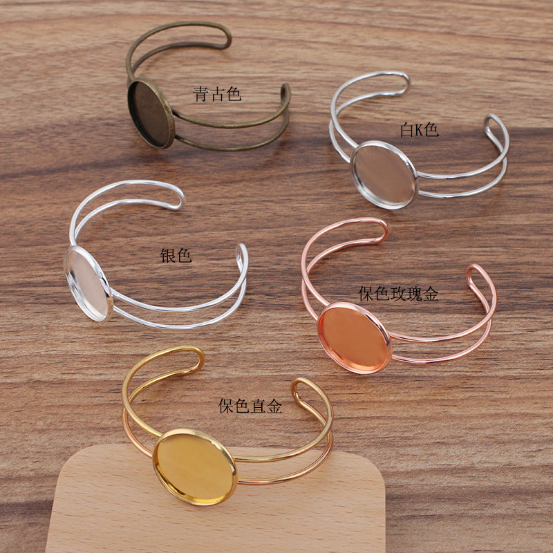 Bracelet à cercle ouvert à deux rangées de 5 bords unis, 18KGP, 20mm, 25mm, cabochon rond, Base vierge, réglage des pièces de pierres précieuses