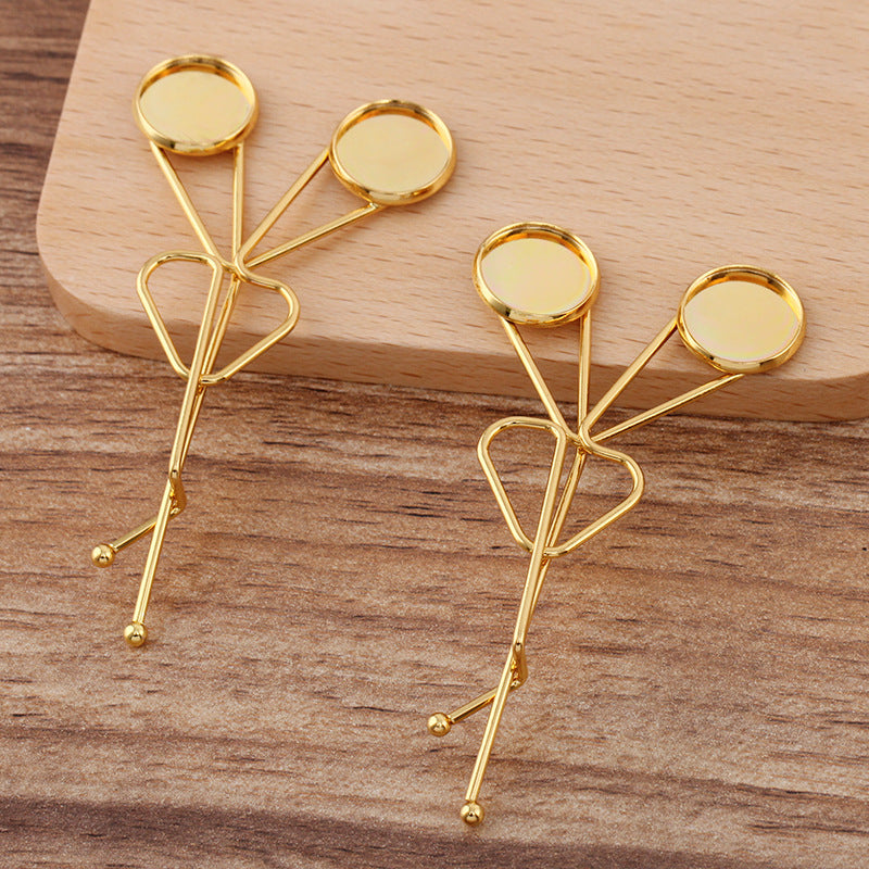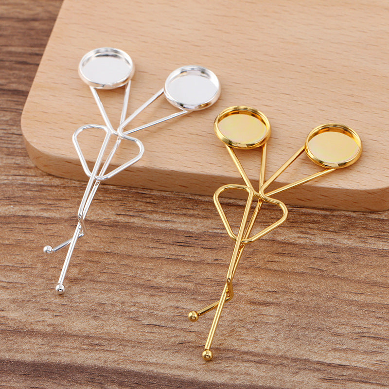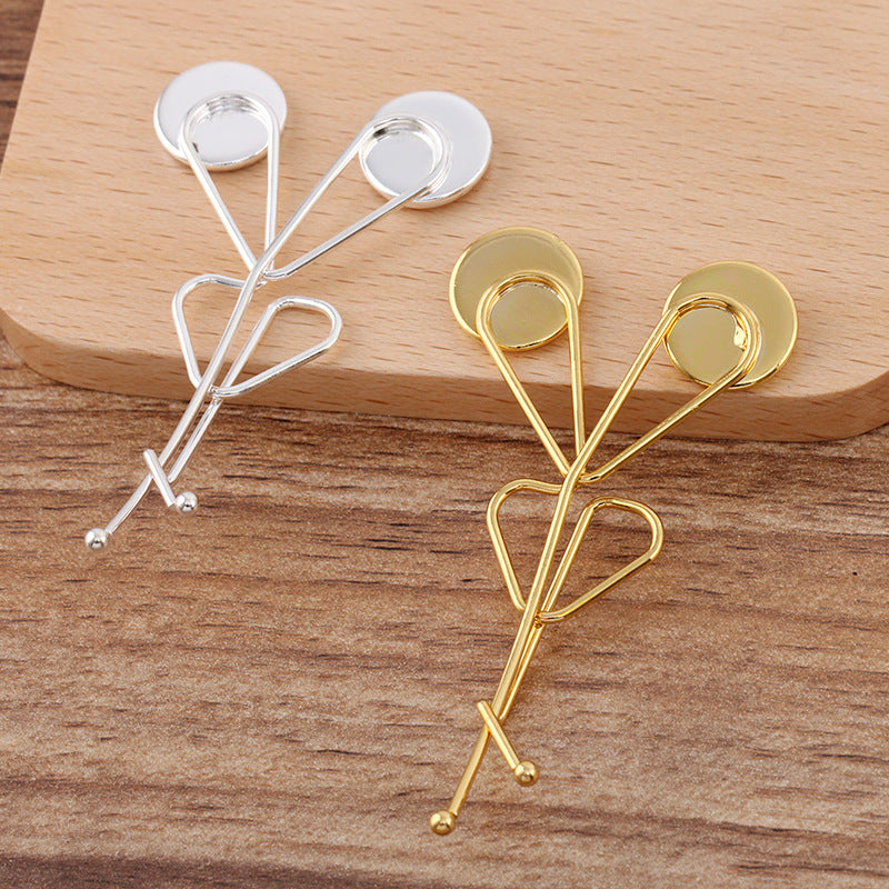 20 Double bord uni lunette coupe fil enveloppé pince à cheveux épingle à cheveux 18KGP 12mm cabochon rond Base vierge réglage de la pièce de pierre précieuse