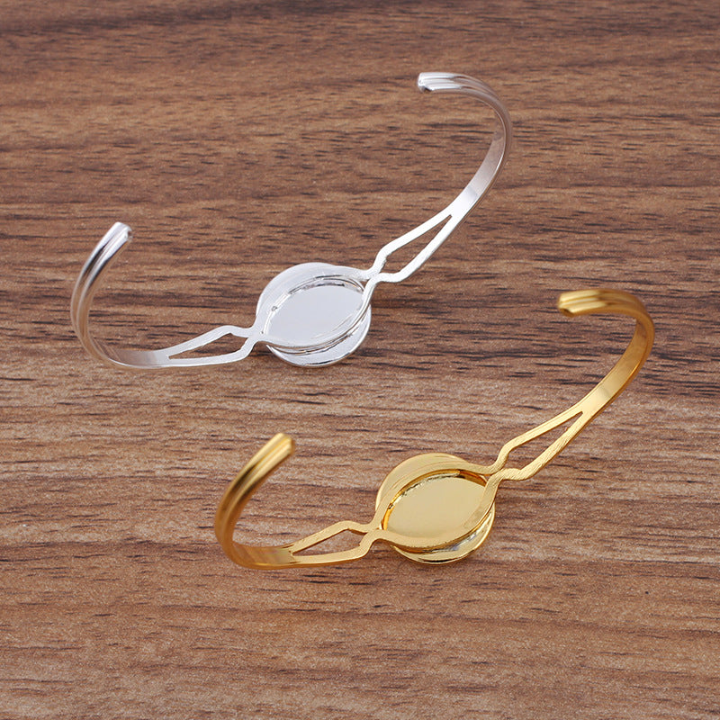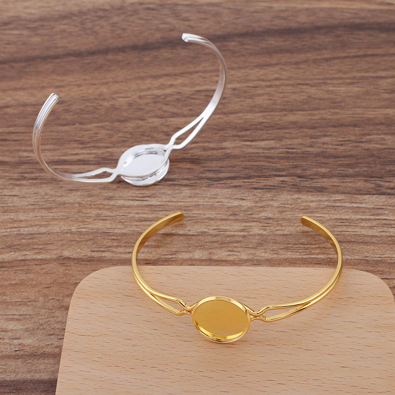 Bracelet à cercle ouvert à deux rangées de 5 bords unis, 18KGP, cabochon rond de 16mm, Base vierge, sertissage de pièces de pierres précieuses