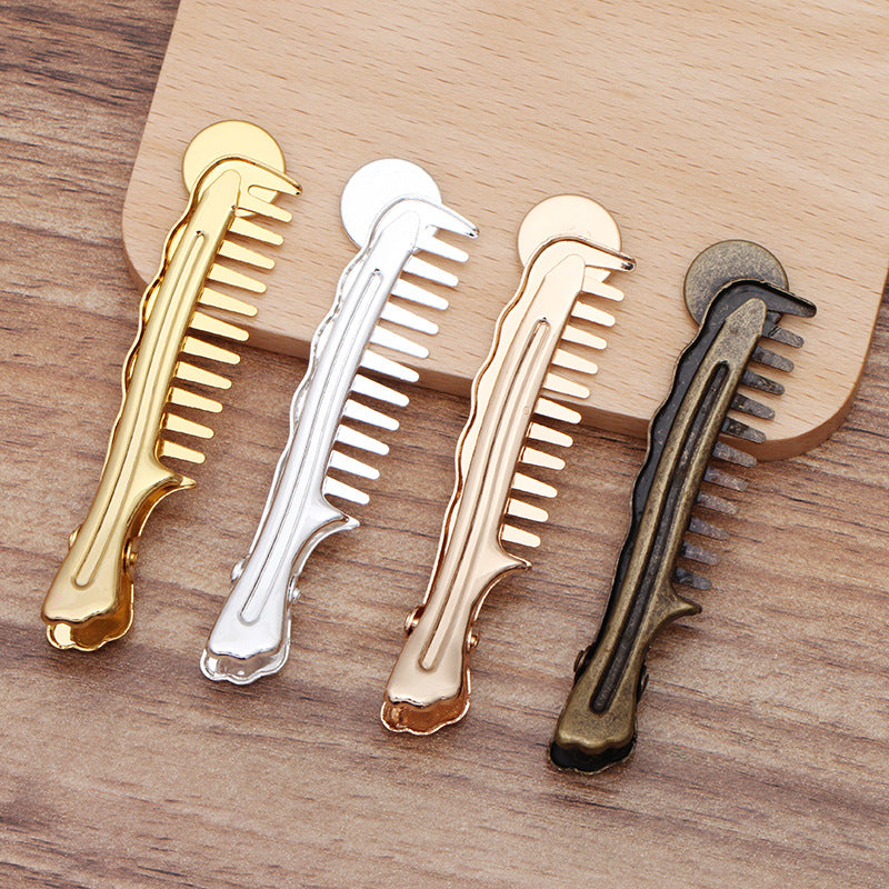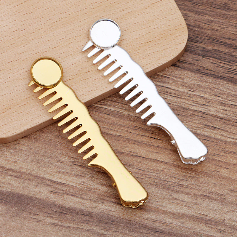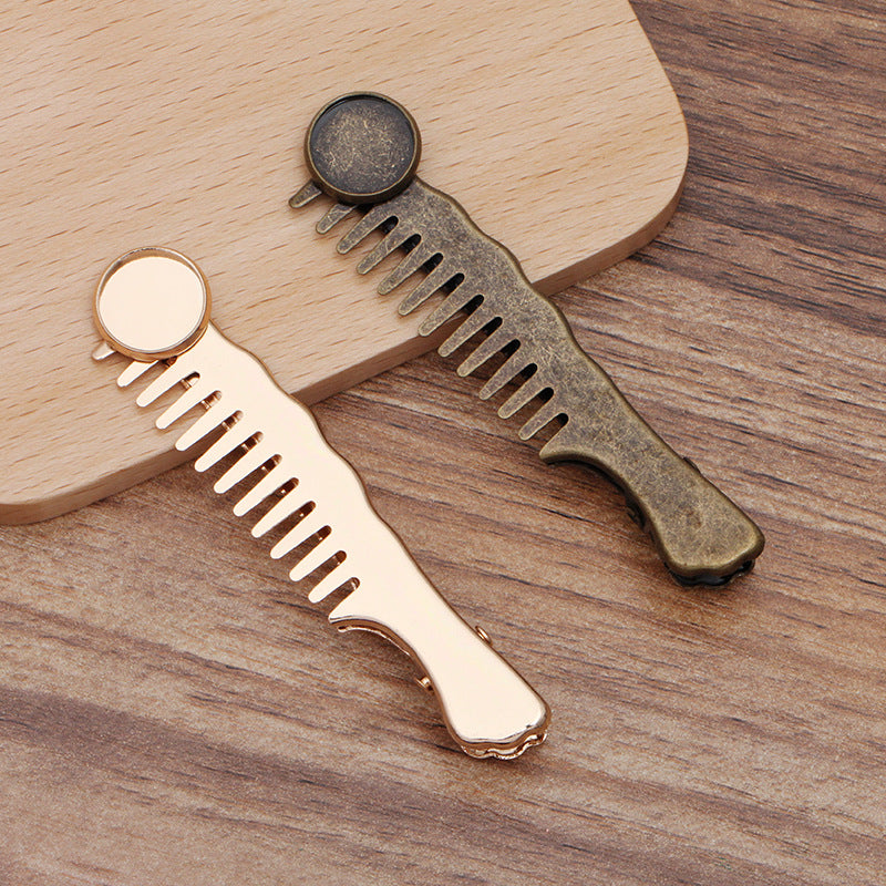 10 peigne à lunette à bord uni, breloque pour cheveux, pince crocodile, épingle à cheveux, 18KGP, cabochon rond de 12mm, Base vierge, réglage de la pièce en pierre précieuse