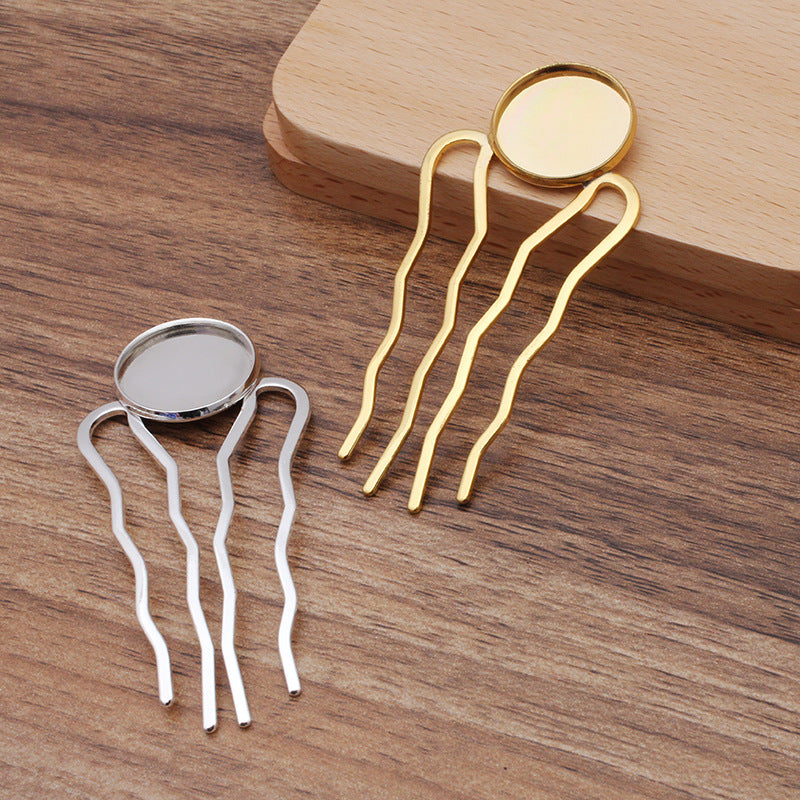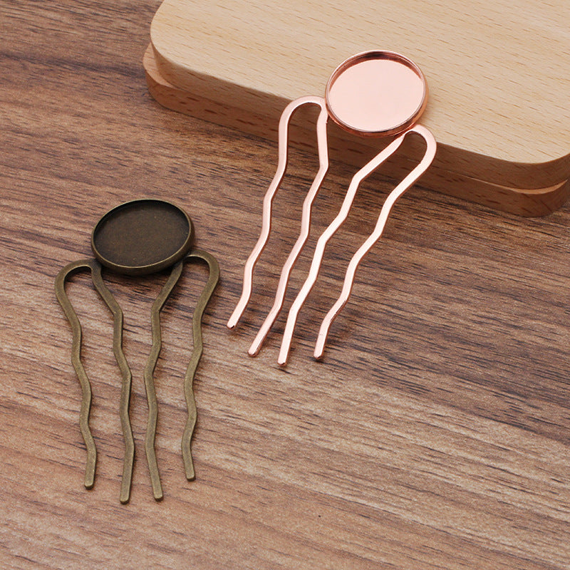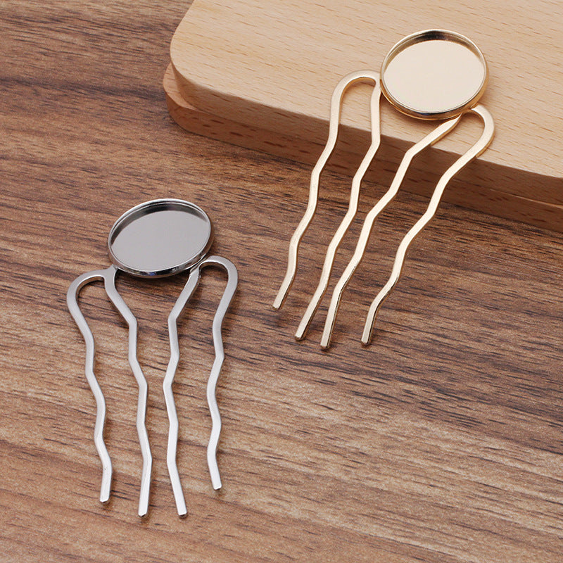 10 coupe de lunette à bord uni, fourchette à cheveux, peigne, épingle à cheveux 18KGP, cabochon rond de 20mm, Base vierge, réglage de pièces de pierres précieuses