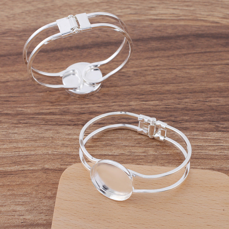 Bracelet ouvrable à deux rangées de 50, tasse à lunette à bord haut, 18KGP, cabochon rond de 25mm, Base vierge, réglage des pièces de pierres précieuses