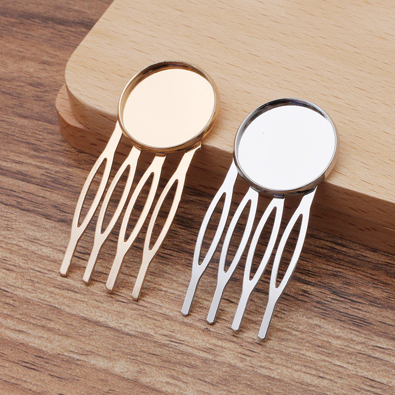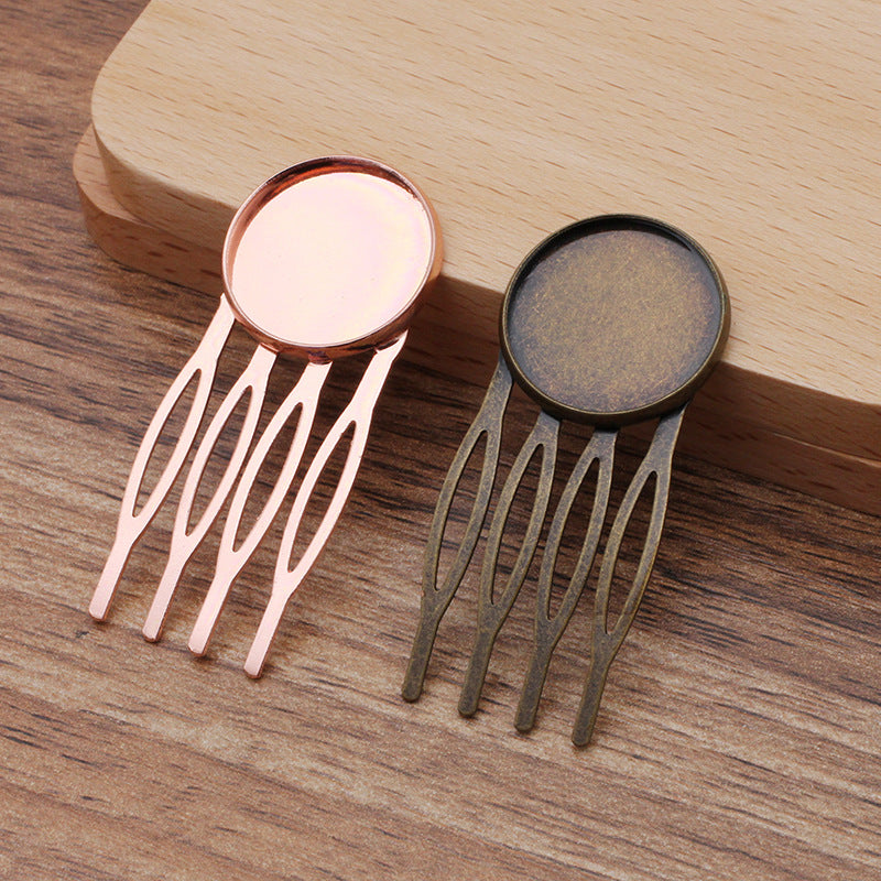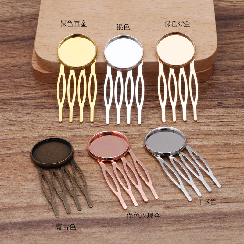 10 coupe de lunette à bord uni, fourchette à cheveux, peigne, épingle à cheveux 18KGP, cabochon rond de 20mm, Base vierge, réglage de pièces de pierres précieuses
