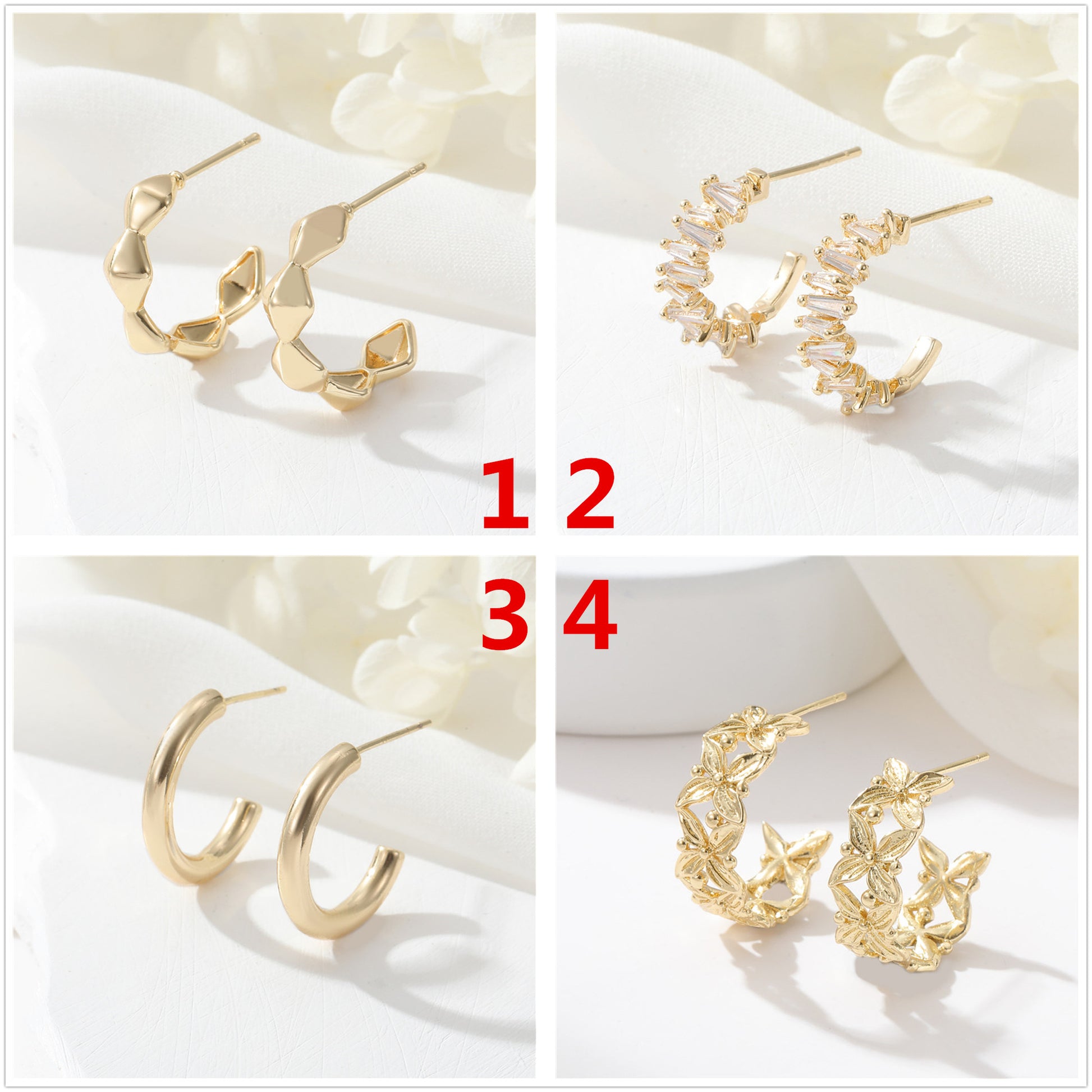 4 boucles d'oreilles à tige florales à facettes en demi-cercle 14K GF Earing