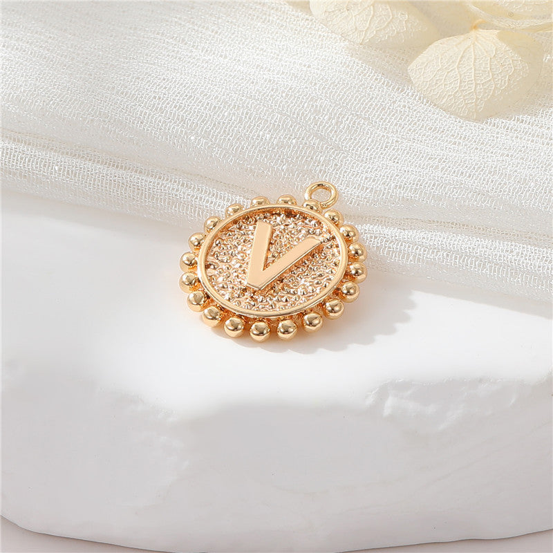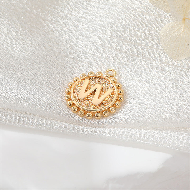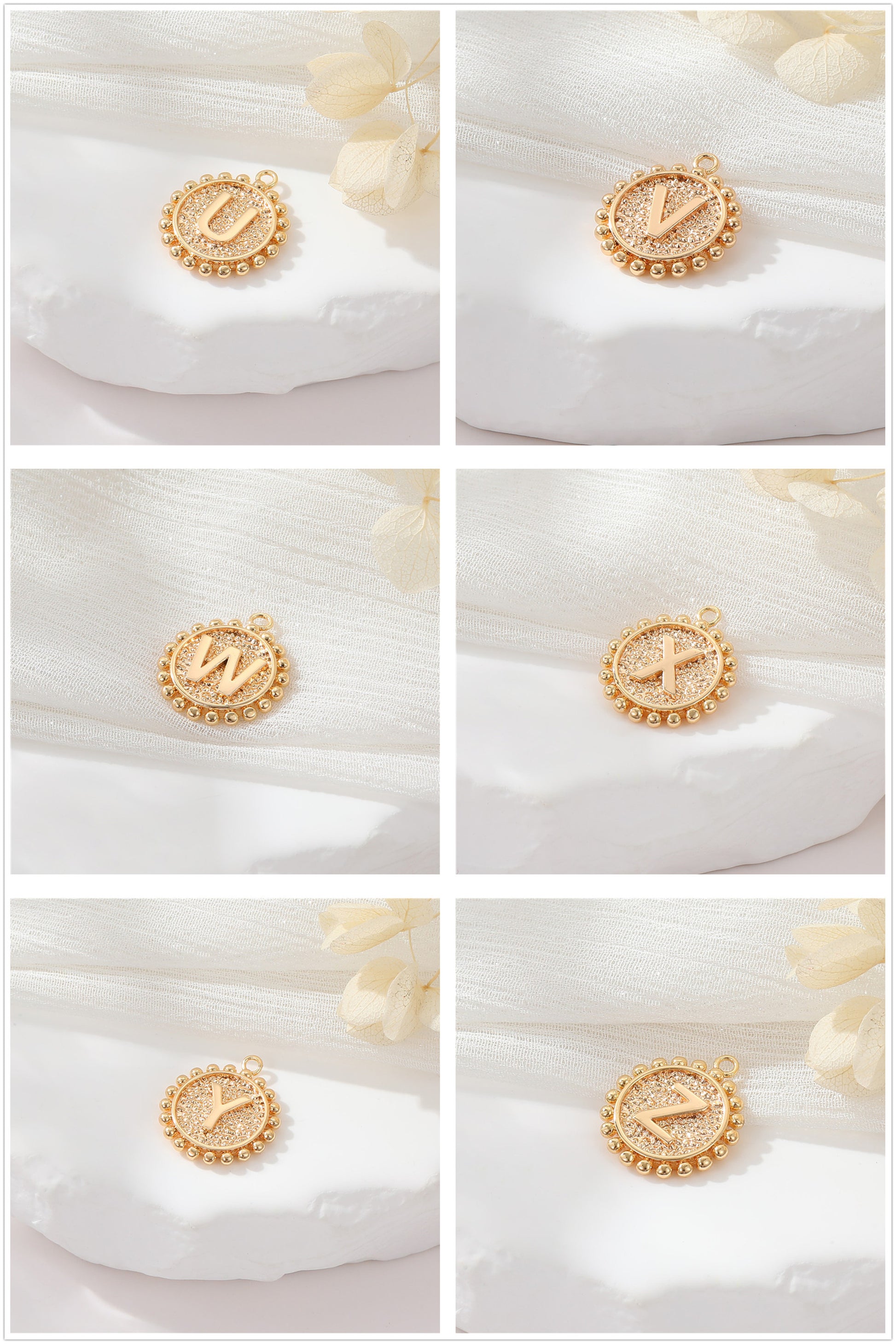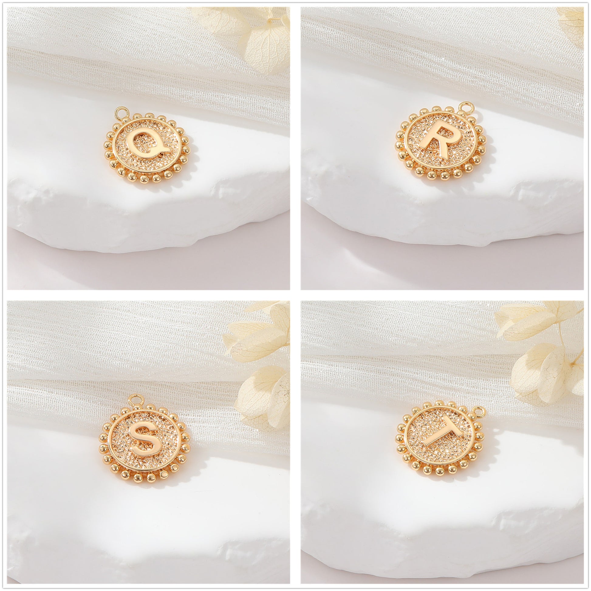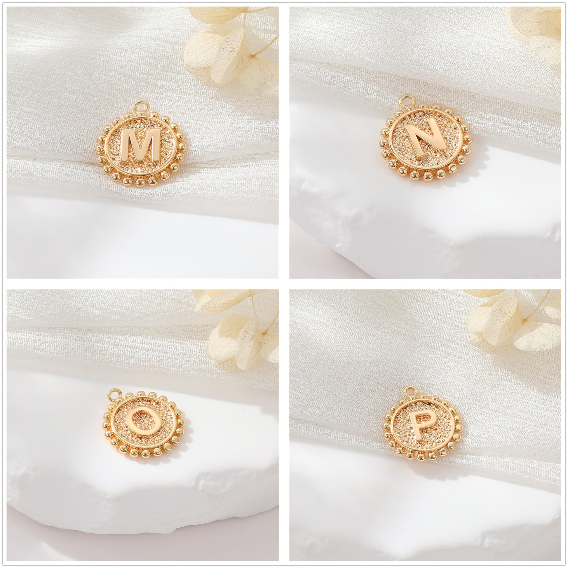 2 perles rondes à bord de pièce de monnaie initiale Alphabet AZ Charm Pendentif 14K GF