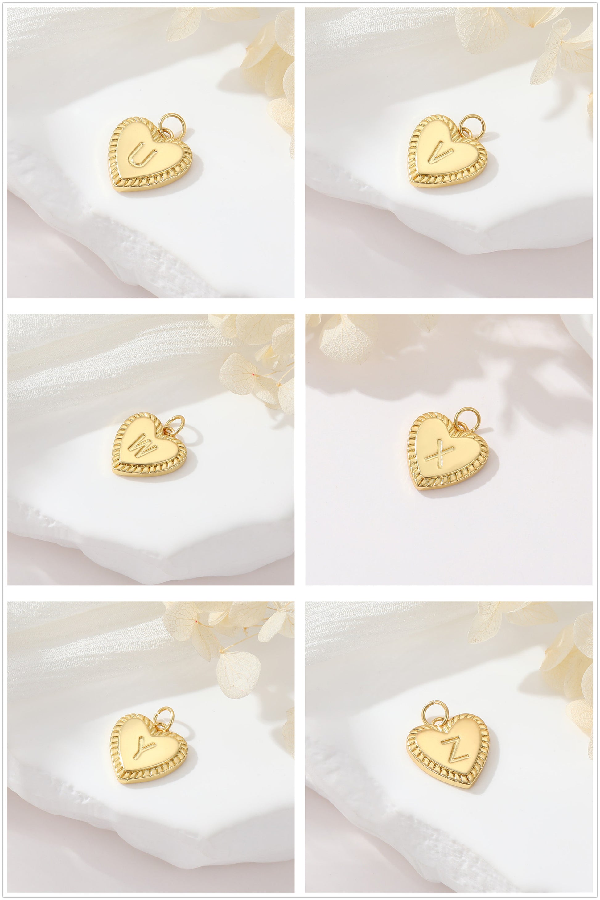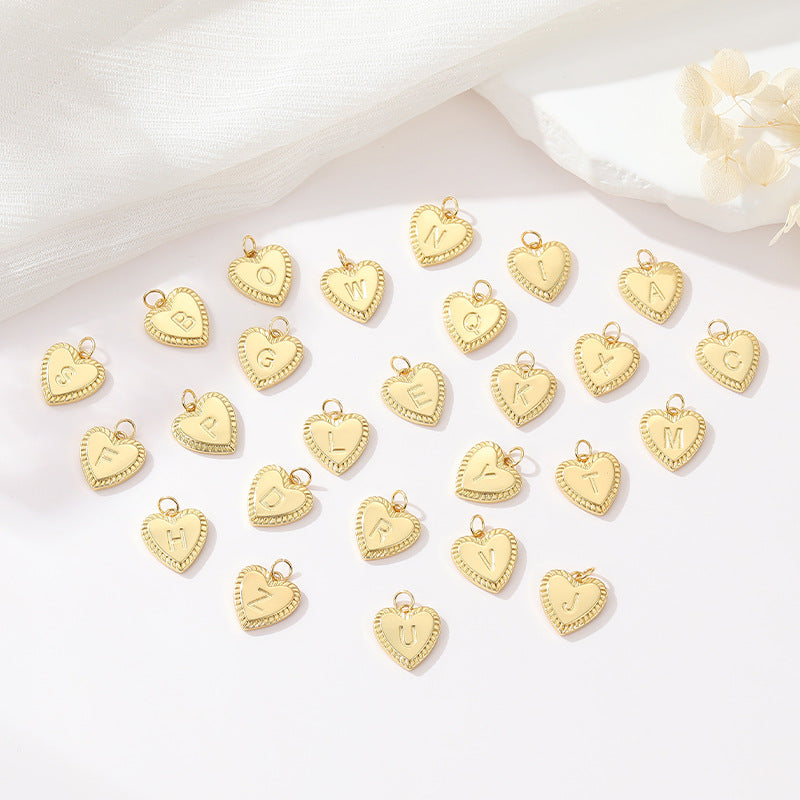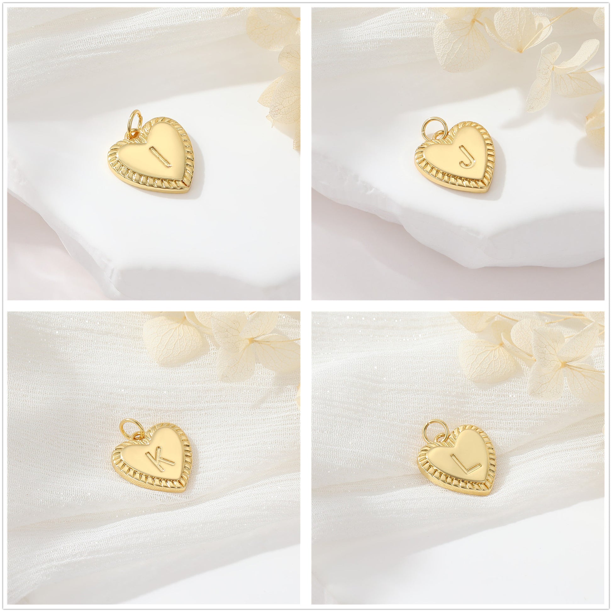 Pendentif à breloque 2 coeurs initiales Alphabet AZ 14K GF