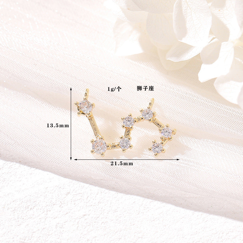 Pendentif à breloque zodiaque 2 étoiles orné de strass 14K GF