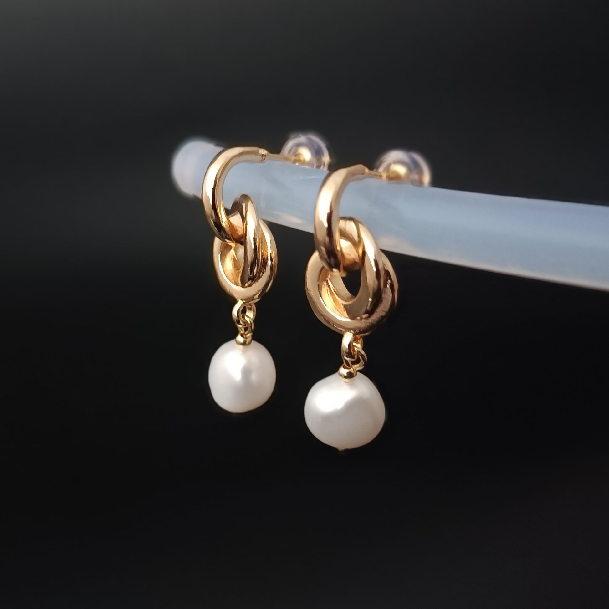 Boucles d'oreilles en perles baroques d'eau douce naturelles, usage quotidien, clou d'oreille noué GF 14K