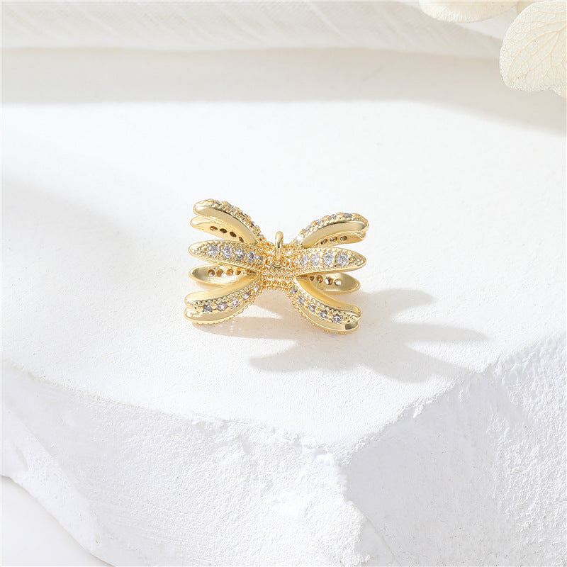 2 fermoirs à vis floraux ornés de strass 14K GF