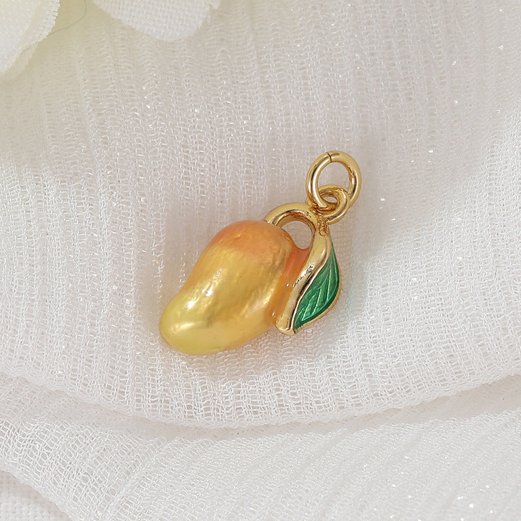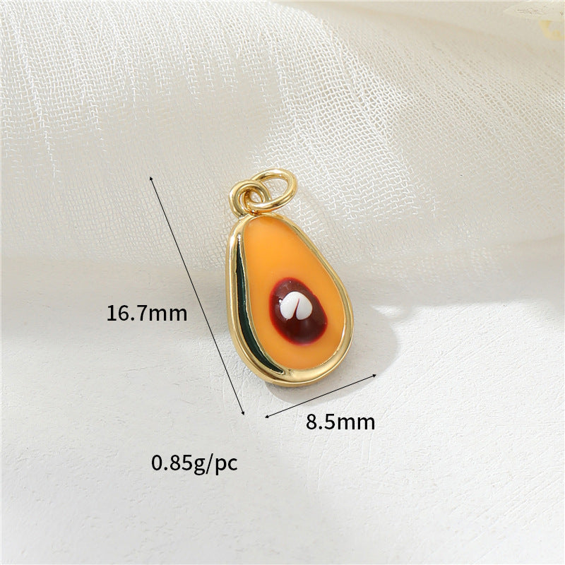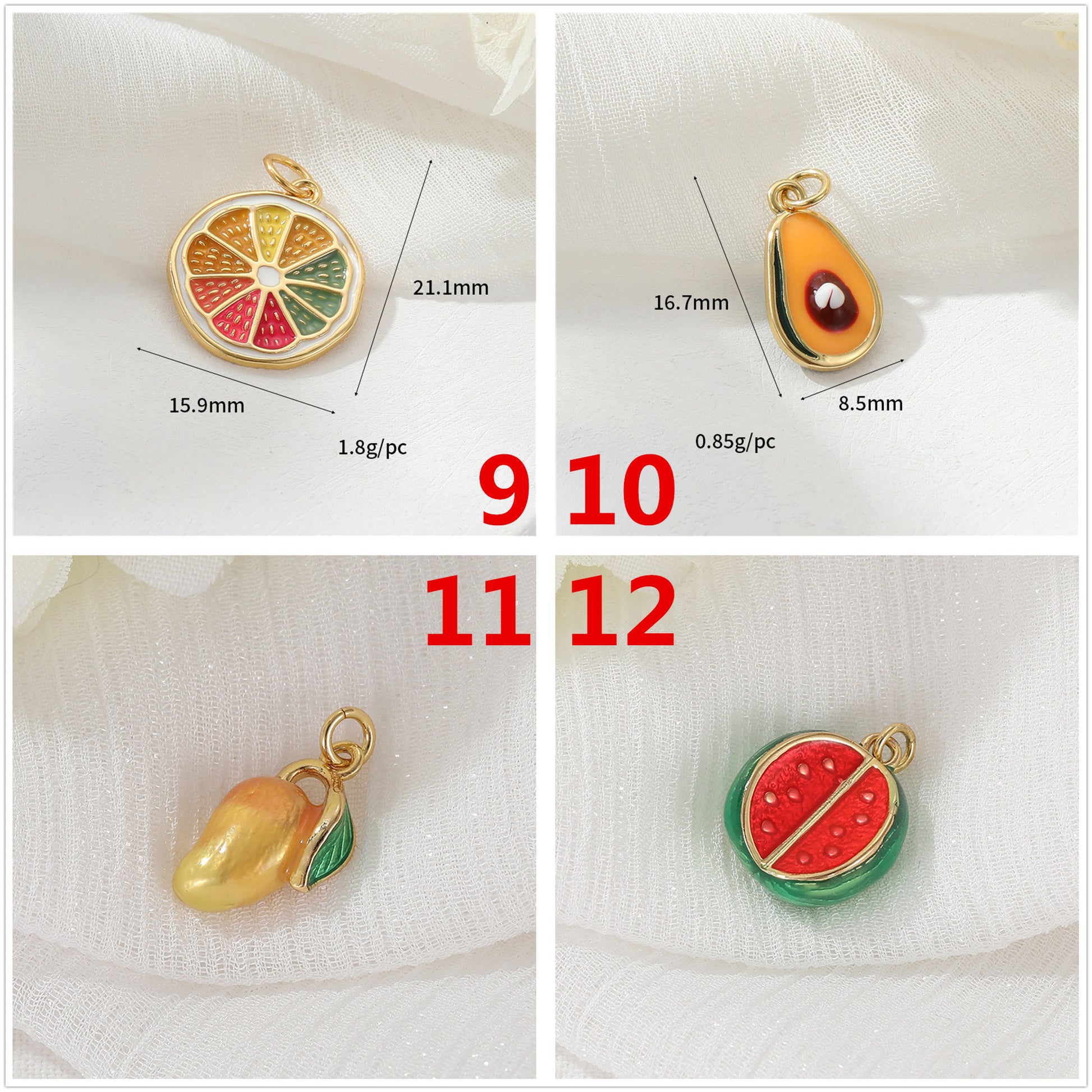 2 Grenade Durian Fraise Pomme Pitaya Orange Banane Ananas Citron Avocat Mangue Pastèque Fruit Charme Pendentif Émail Époxy 14K GF