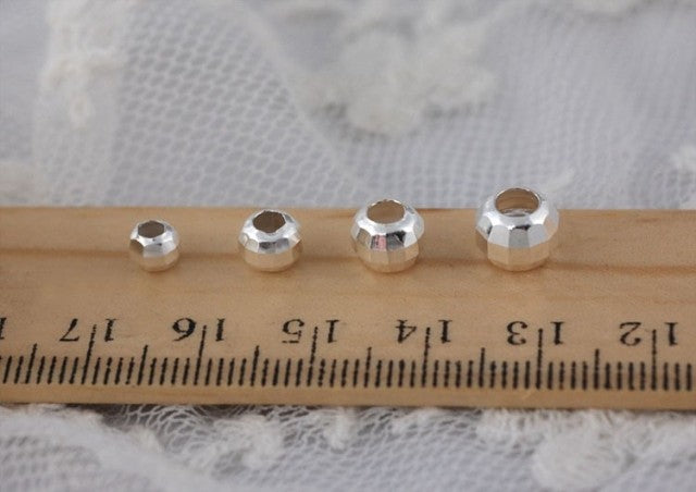 Sterling Silver Glossy Faceted Round Bead Spacer S990 Finding