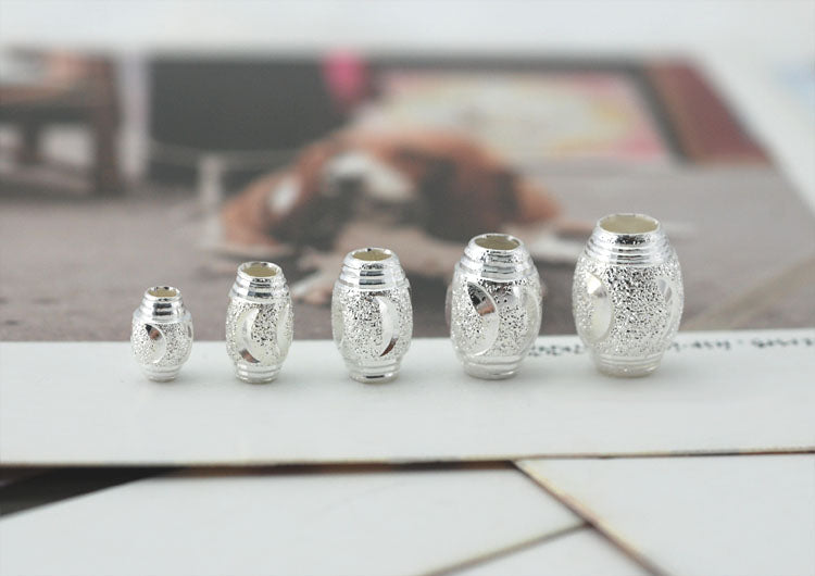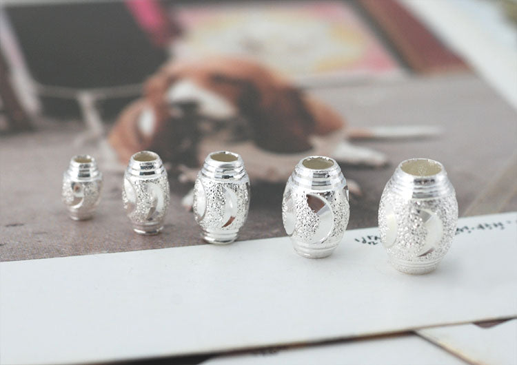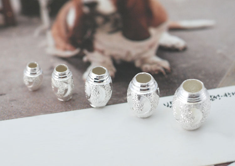 Sterling Silver Frosted Carved Olive Bead Spacer S990 Finding