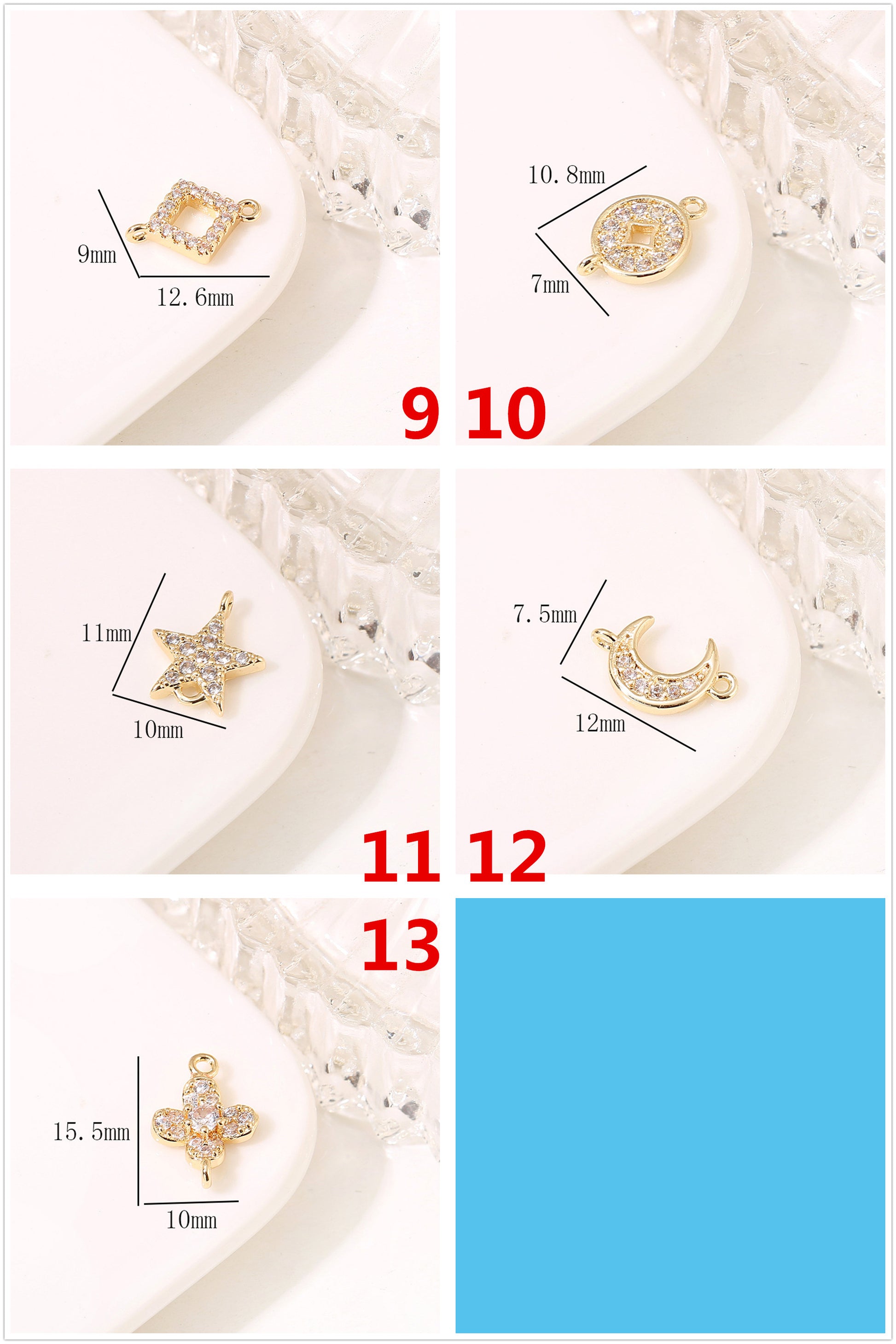 2 Double Looped Floral Snowflake Diamond Olive Charm Connector Rhinestone Embellished 14K GF