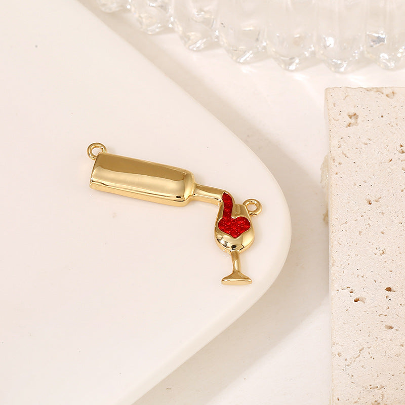 2 Wine Bottle Glass Goblet Charm Pendant Rhinestone Embellished 14K GF