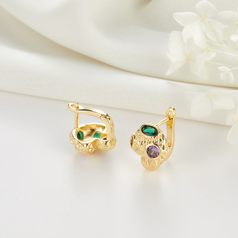 4 Carved Hoop Earrings Rhinestone Embellished 14K GF Earing