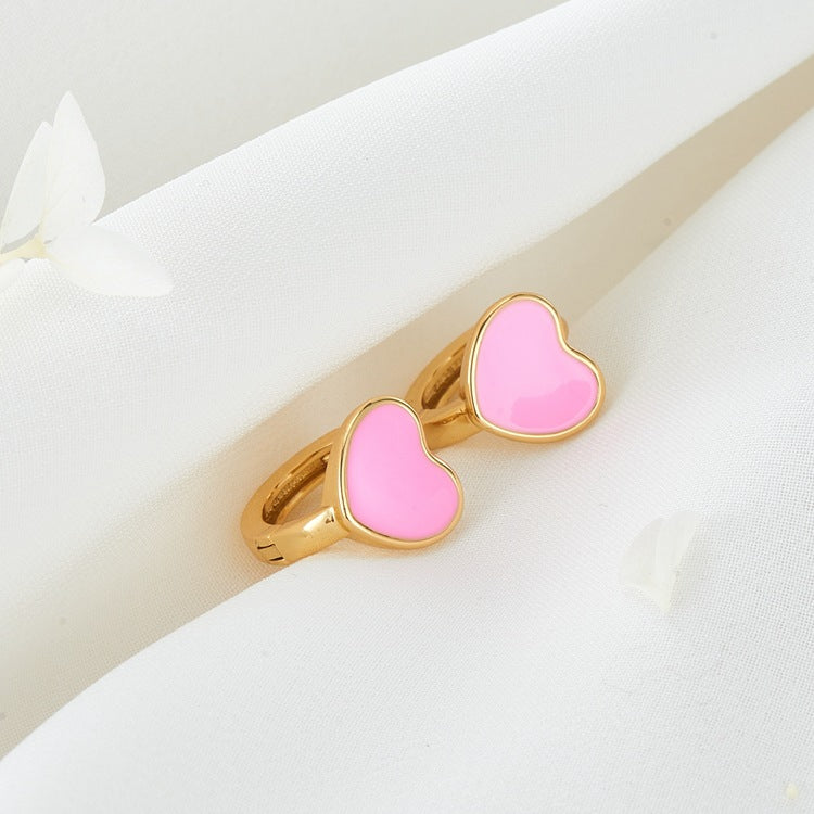 4 Heart Hoop Earrings Enamel Epoxy 14K GF Earing