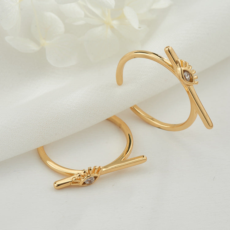 2 Open Circle Star Eye Statement Ring Rhinestone Embellished 14K GF