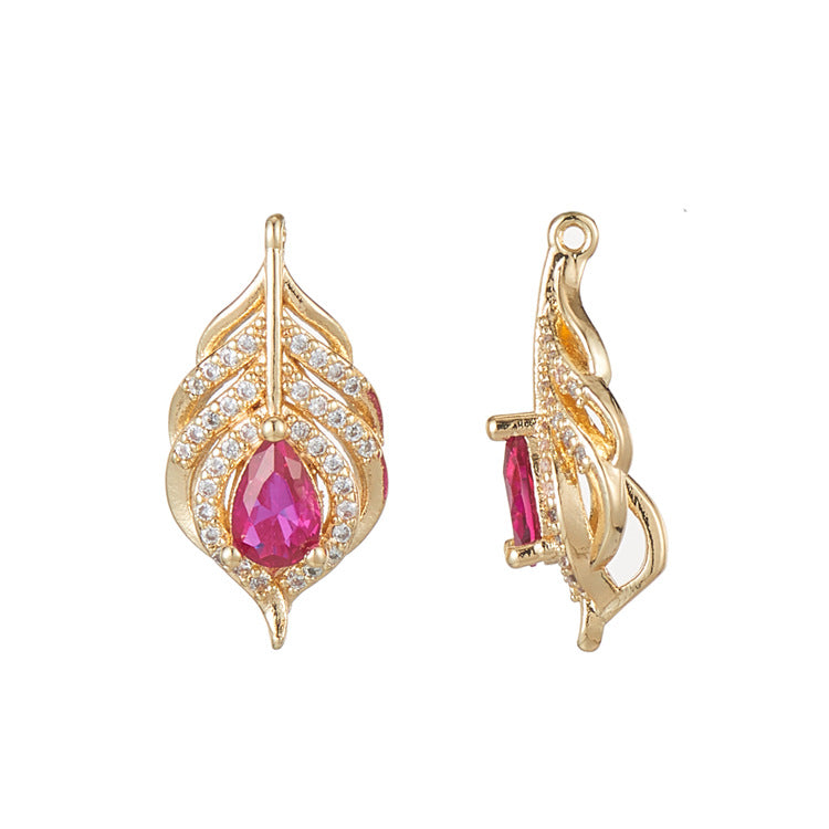 2 Star Rectangle Star Feather Charm Pendant Rhinestone Embellished 14K GF Half Drilled Pearl Bead Blank