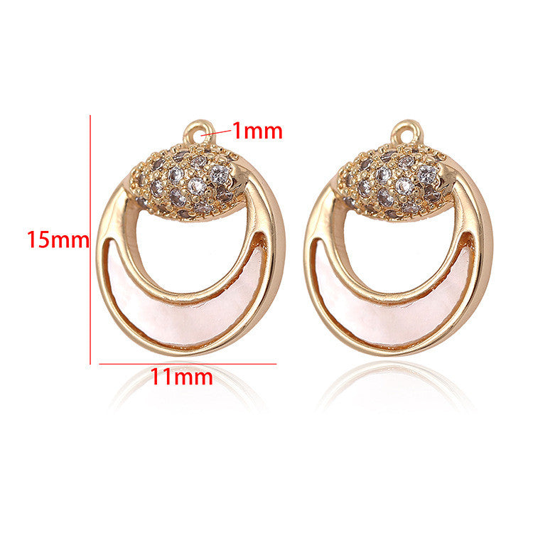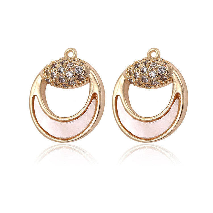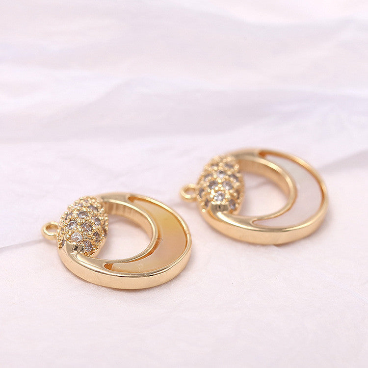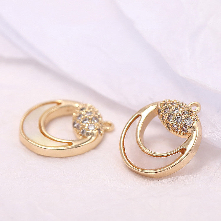 2 Round Moon Charm Pendant Shell Rhinestone Embellished 14K GF