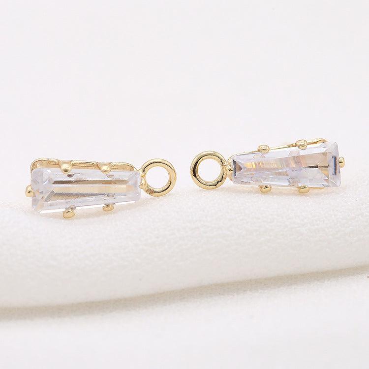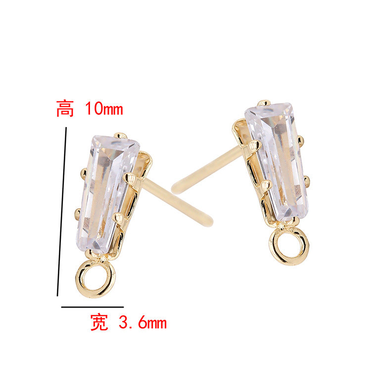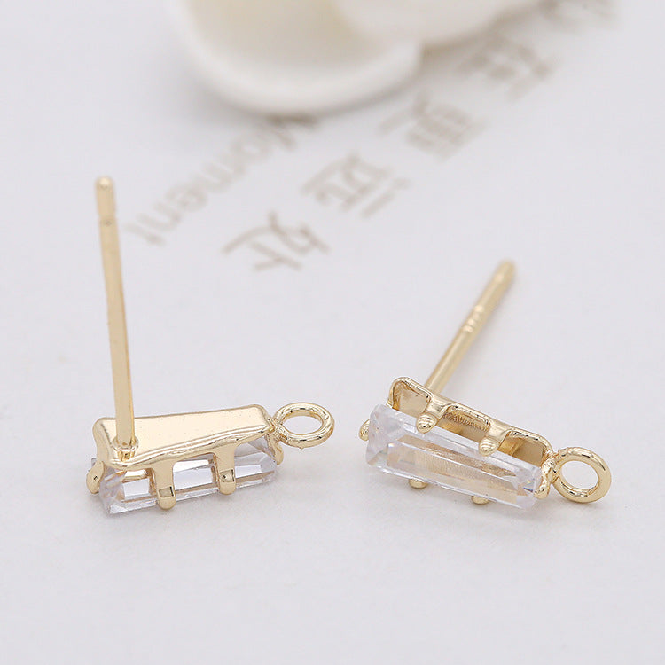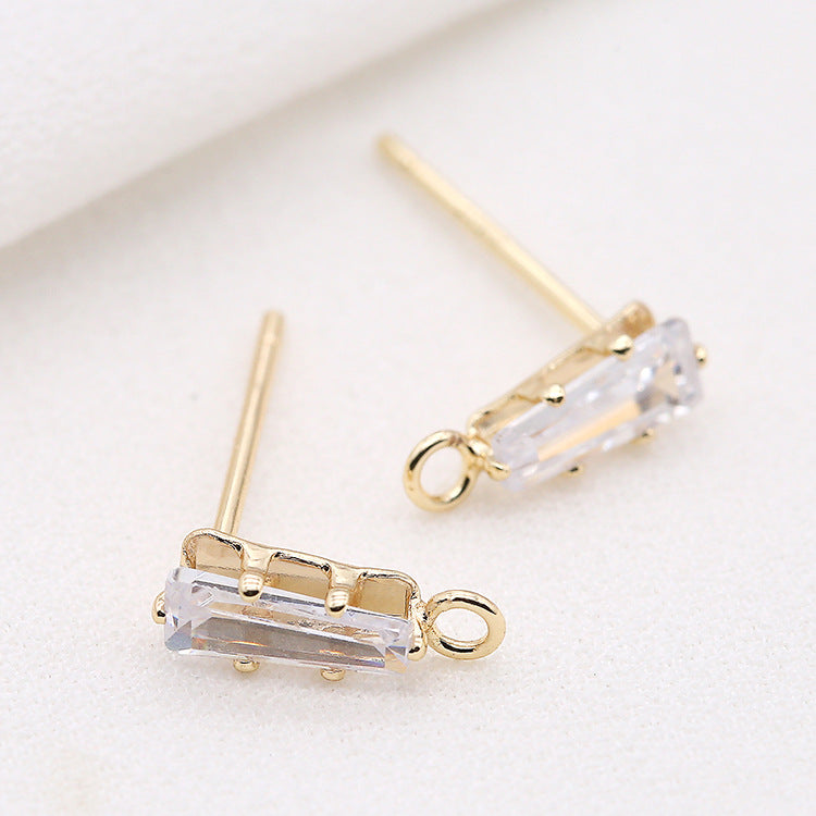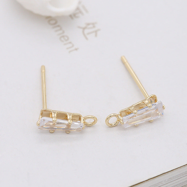 4 Trapezoid Stud Earrings with Loop 14K GF Rhinestone Embellished Earing