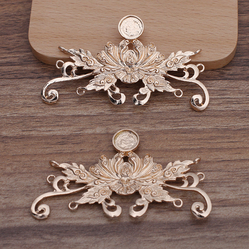 10 Multi Looped Chrysanthemum Floral Charm Pendant 18KGP 10mm Round Cabochon Blank Base Gemstone Piece Setting
