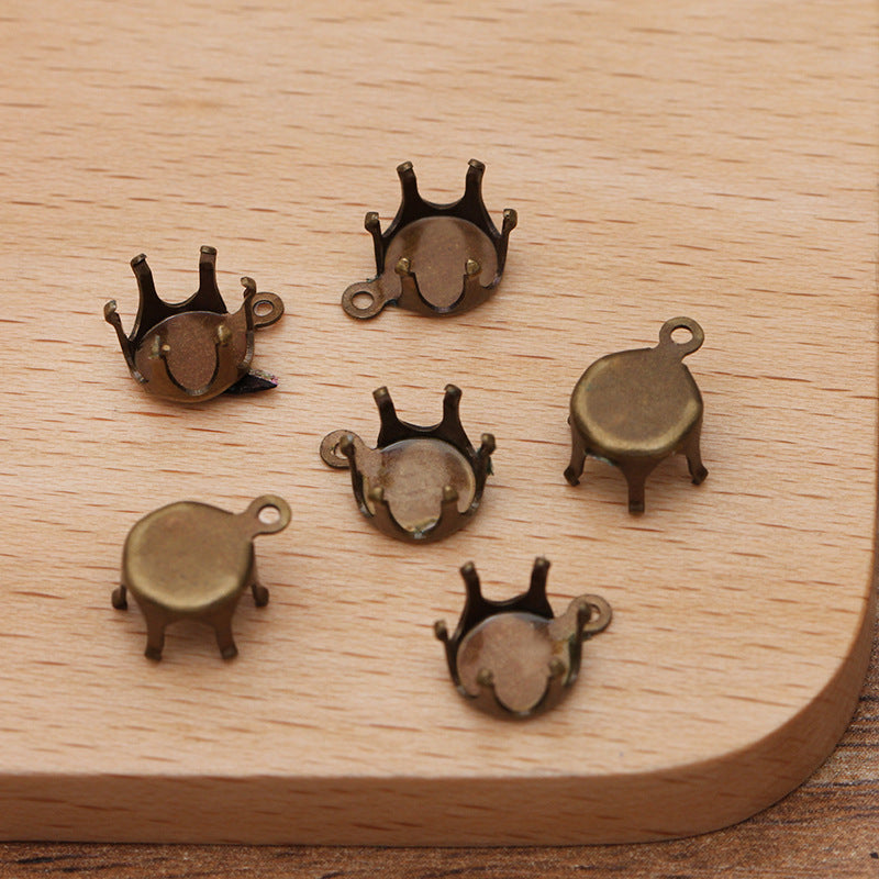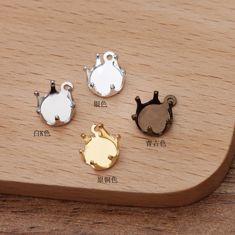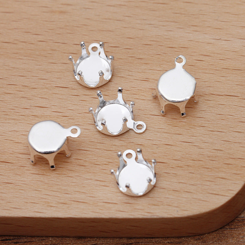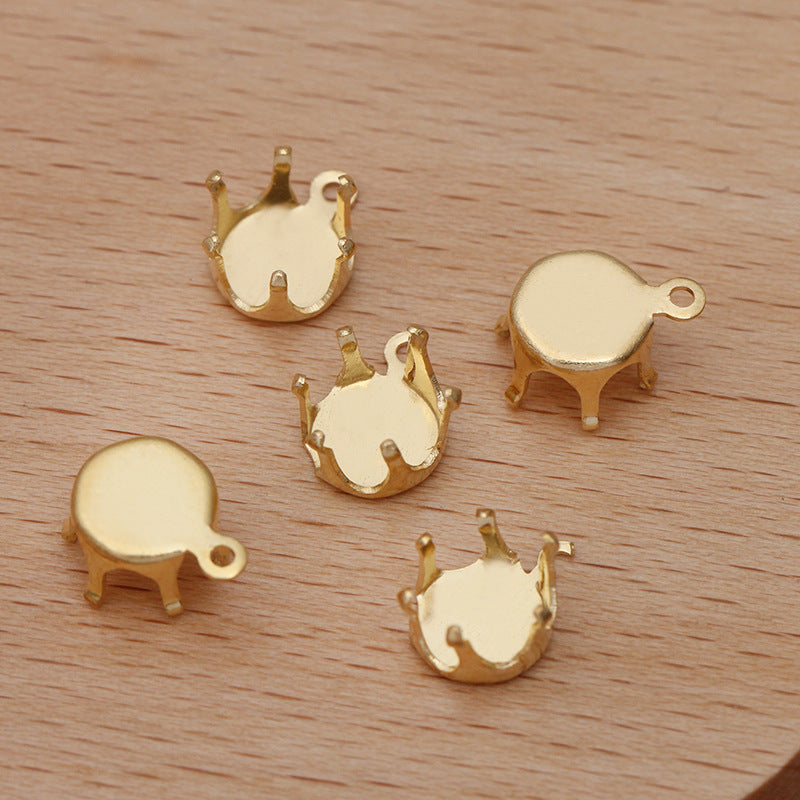 200 Six Claw Charm Pendant 18KGP 6mm Round Rhinestone Zircon Blank Base Gemstone Setting