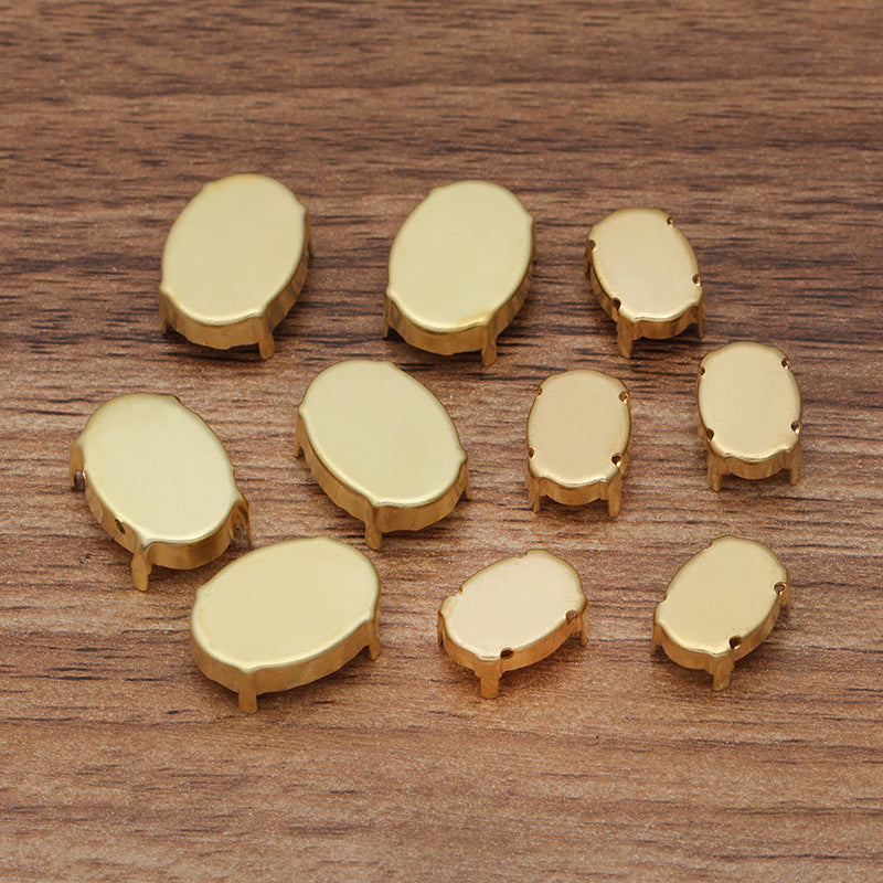 100 Four Claw Charm Flat Back Settings 18KGP 10x14mm 13x18mm Oval Cabochon Rhinestone Zircon Gemstone Blank Base