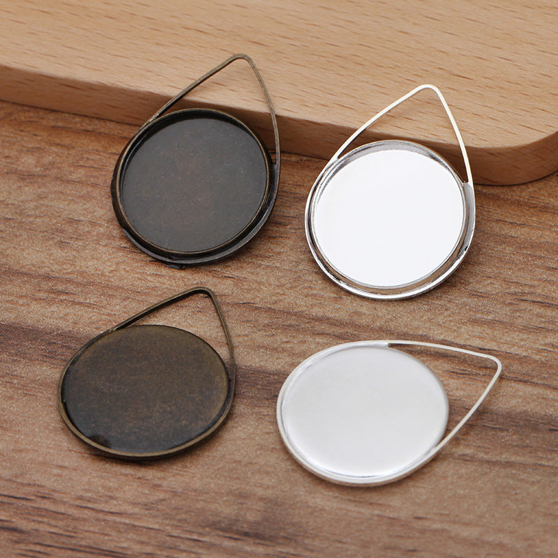 100 Round Cabochon Bezel Cup Waterdrop Star Charm Pendant 18KGP 20mm Flat Back Blank Base Gemstone Setting