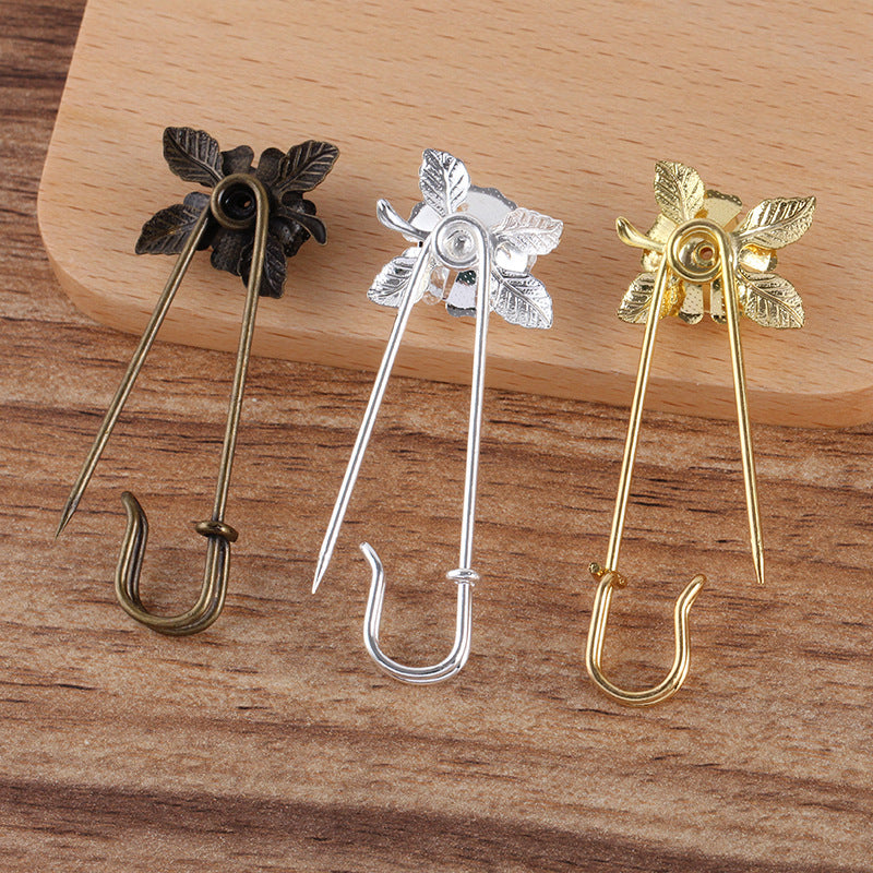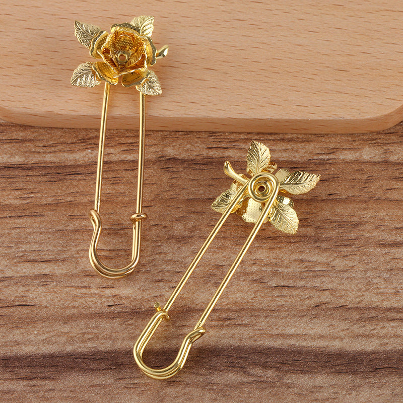 200 Filigree Floral Bead Cap Cup Safety Brooch Pin 18KGP Round Bead Blank Base Setting