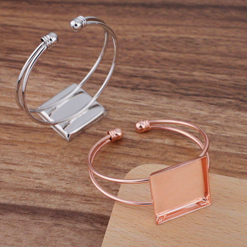 5 Plain Bezel Cup Open Circle Bangle 18KGP 25x25mm Square Cabochon Blank Base Gemstone Setting