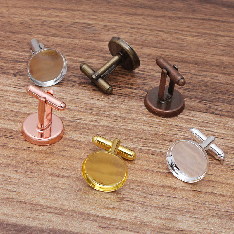 200 High Edge Bezel Cup Cufflink 18KGP 16mm Round Cabochon Blank Base Gemstone Setting