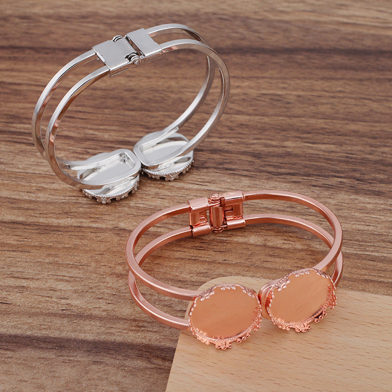 50 Crown Edge Bezel Cup Two Row Openable Circle Bangle 18KGP 20mm Double Round Cabochon Blank Base Gemstone Piece Setting